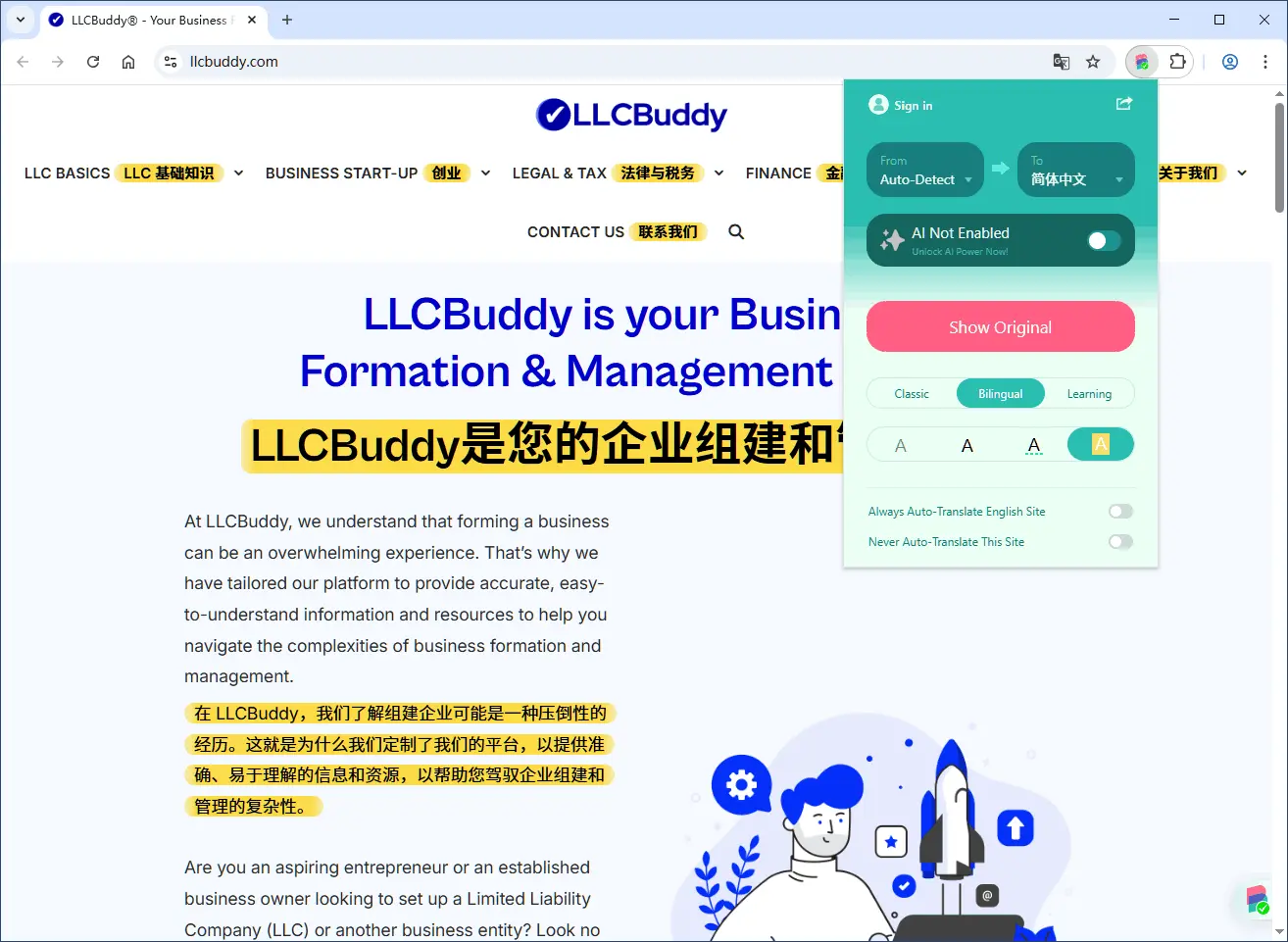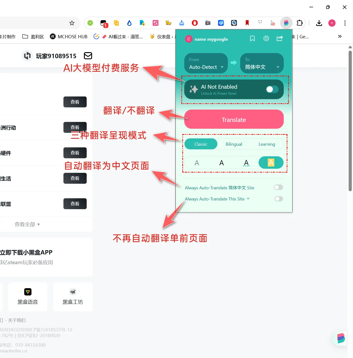 - 即时双语转换:用户可以一键将网页内容转换为双语文本,方便对照阅读。