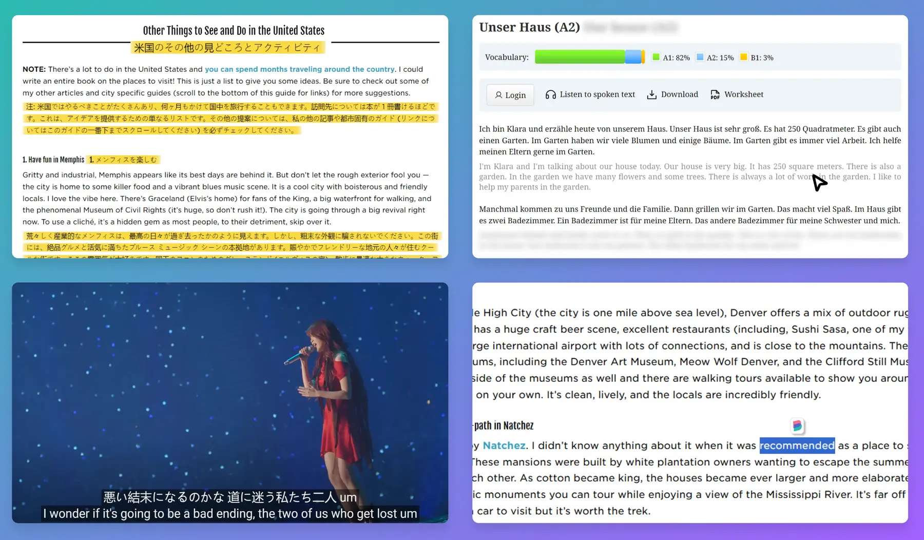- 语言学习模式:为语言学习者设计,可以高亮显示或显示母语翻译,帮助学习。