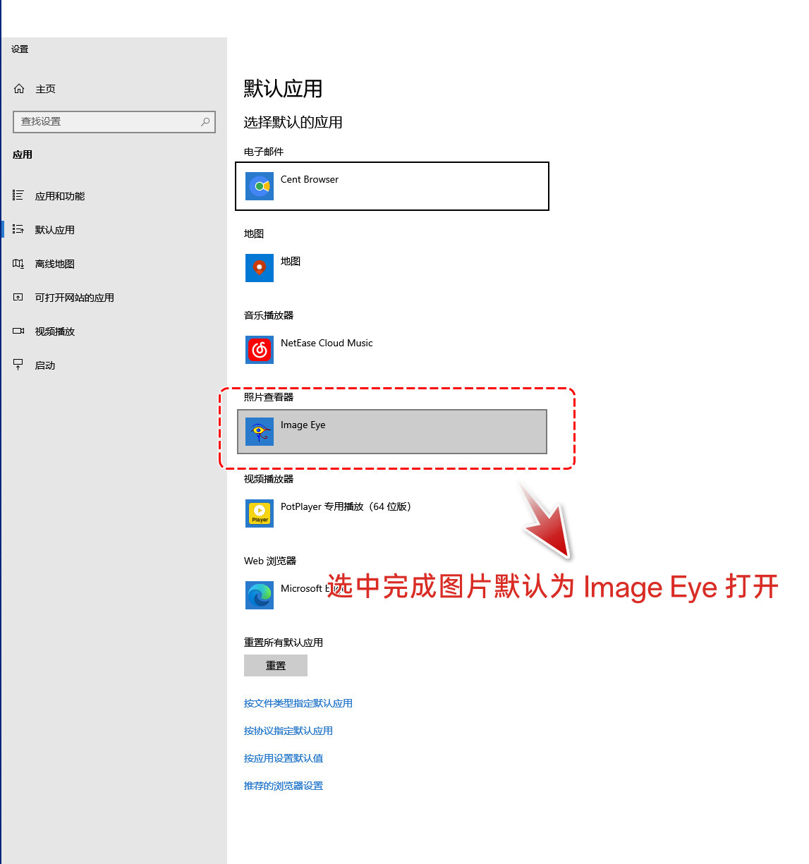 2、系统会自动弹出默认应用,选择【照片查看器】选择 Image Eye 即可完成系统默认图片打开方式(如果你暂时不想关联操作,可以直接关闭)