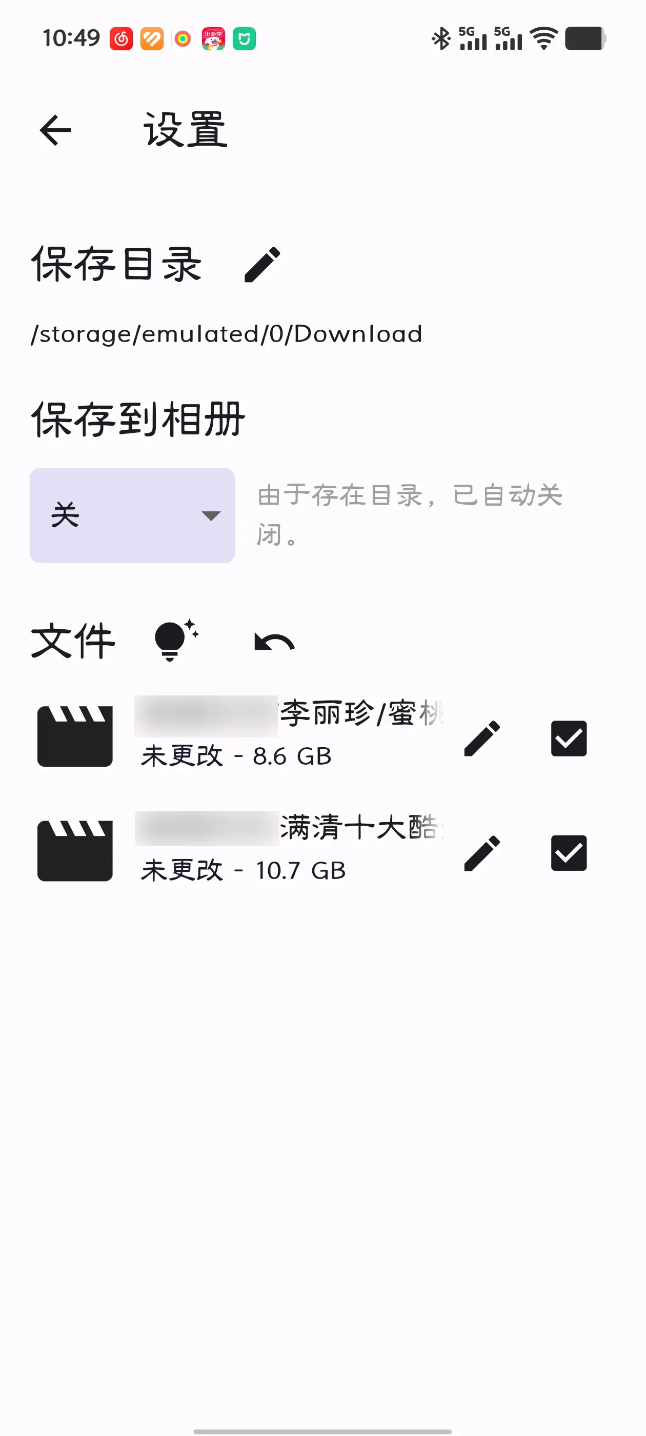 6、上图手机端界面点击【设置】,可以对即将接收的文件设置【保存目录】以及对文件进行【删减】和【编辑】,如下图所示: