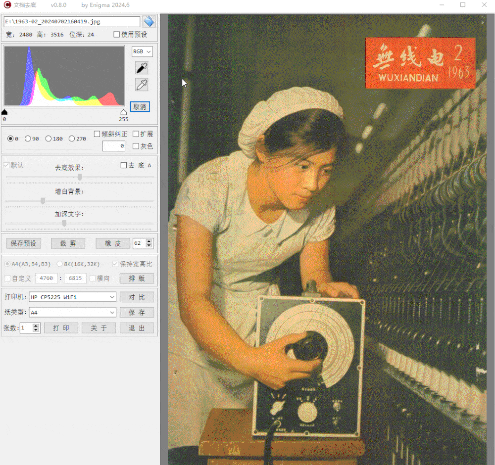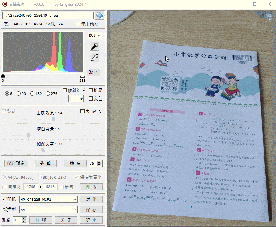 - 去底(调节滑块优化背景和文字清晰度)。