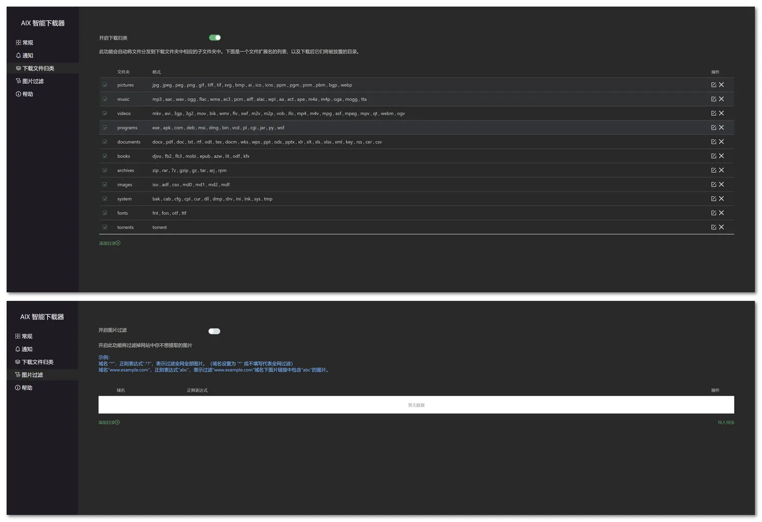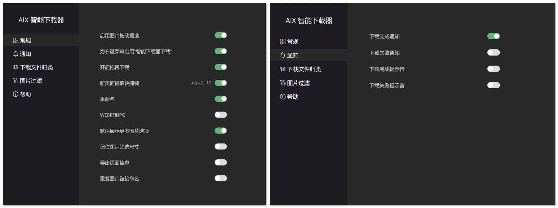 - 支持按图片宽度、高度、格式(JPG/PNG/WebP等)、URL关键词等条件筛选。