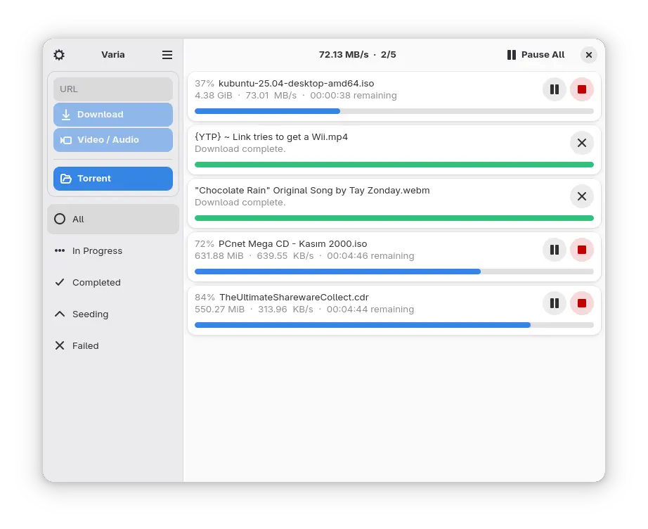 Varia 是一款开源下载管理器,文件、种子、视频流下载统统整合到一个界面,不仅支持常规文件和 BT 下载,还能直接下载各大平台的视频音频流,甚至提供了浏览器插件可一键下载任何内容。提供开箱即用安装包,支持 Windows、Linux 系统安装,感兴趣的同学不妨看一下。
