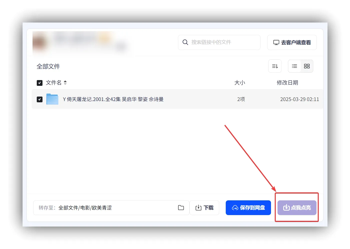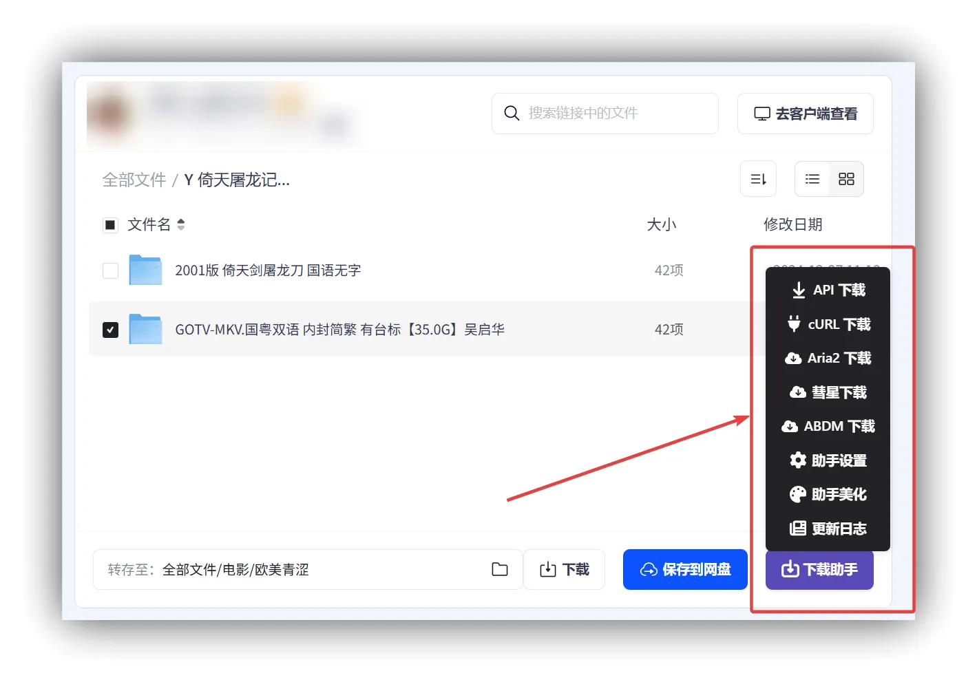 - 打开任意支持的网盘分享页面,登录账号后勾选目标文件;