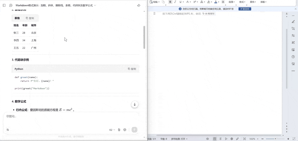 | Kimi | ✅ 完美支持 | ✅ 完美支持 | ✅ 完美支持 | ⚠️ 无法显示公式 |