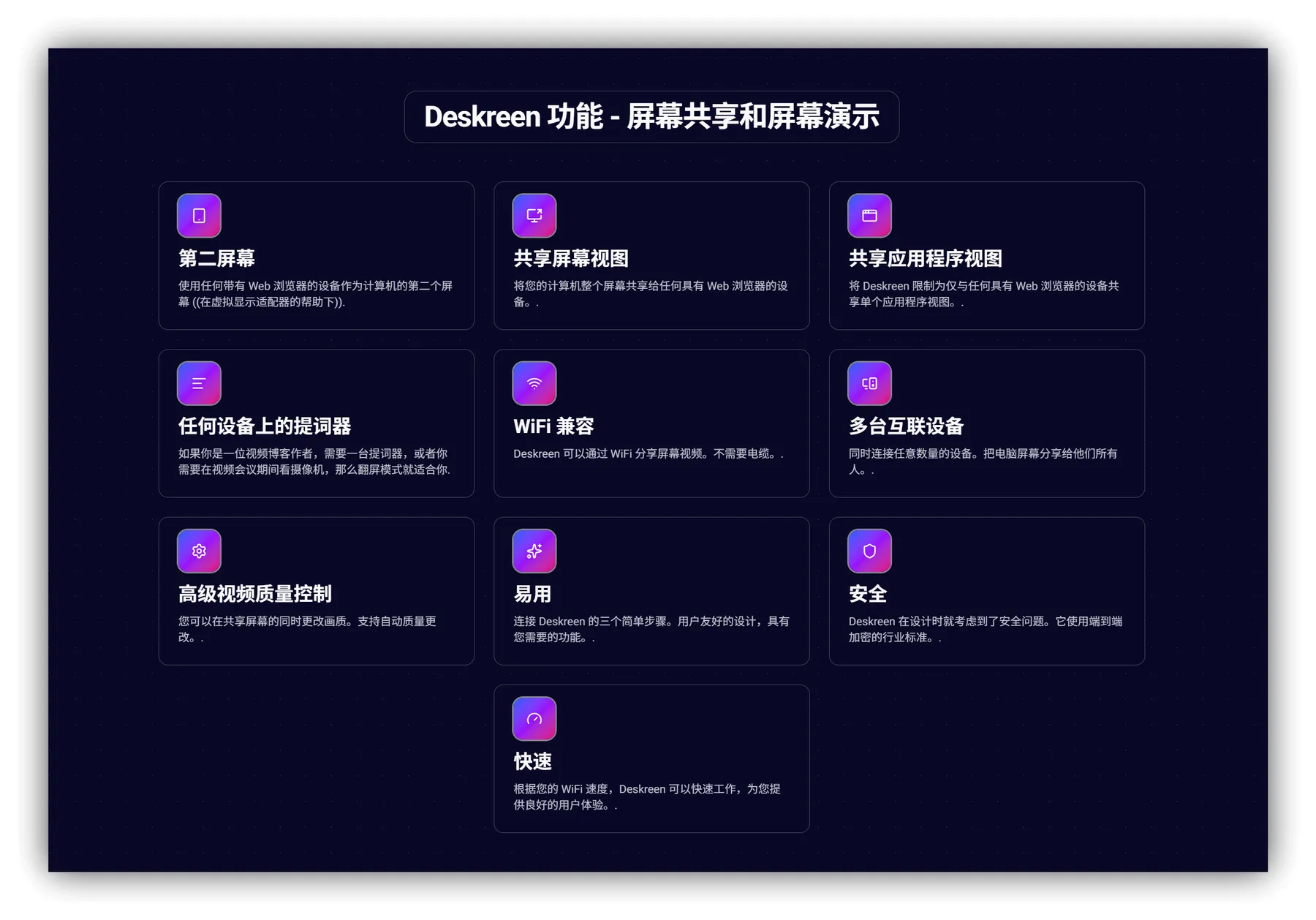一台主机可同时向多个设备推送画面,适用于小组教学、团队协作或多人演示场景。 - 画质与性能自适应