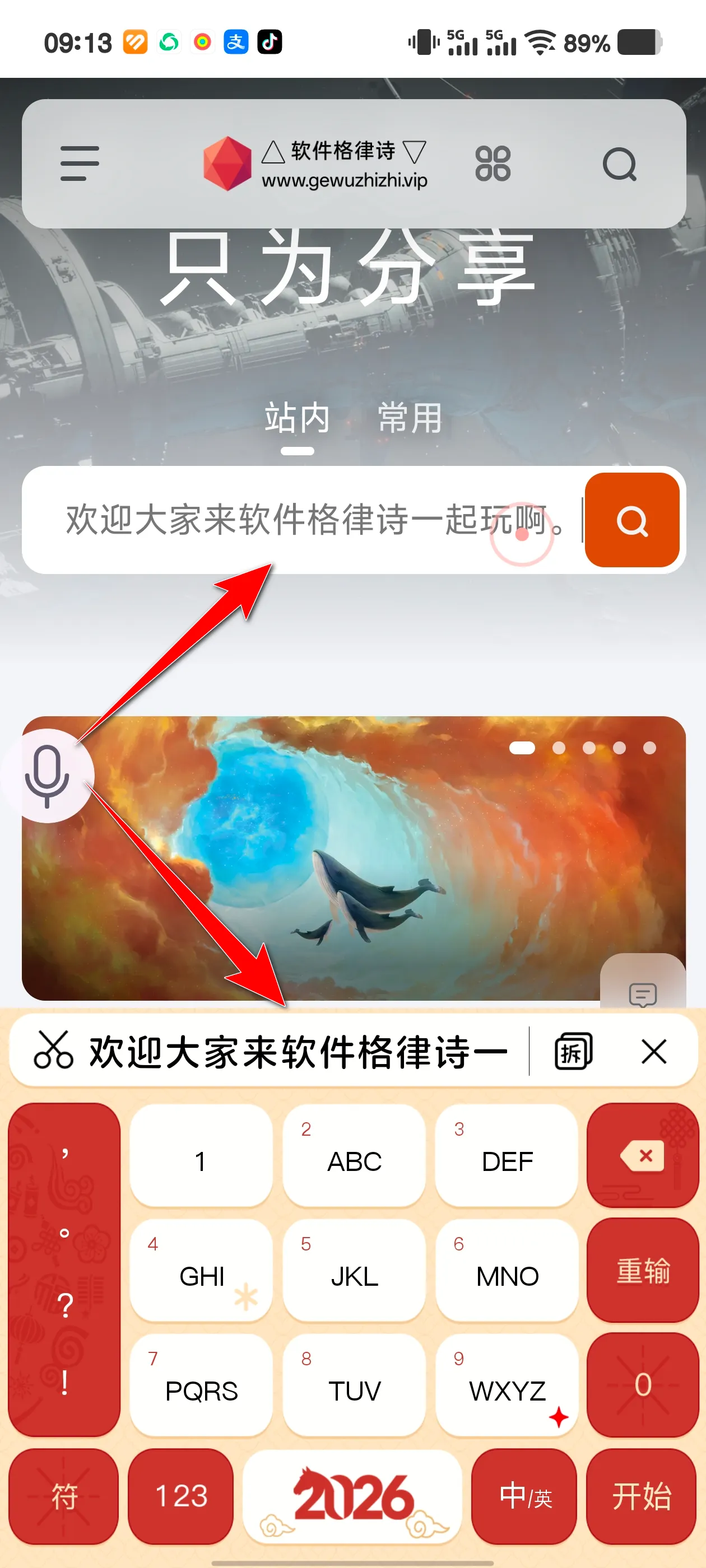 - 在任意输入框切换至说点啥,长按麦克风开始录音,松开即得识别结果。