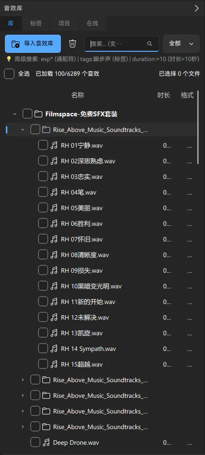 - 高级搜索:按文件名、时长、标签、通配符筛选