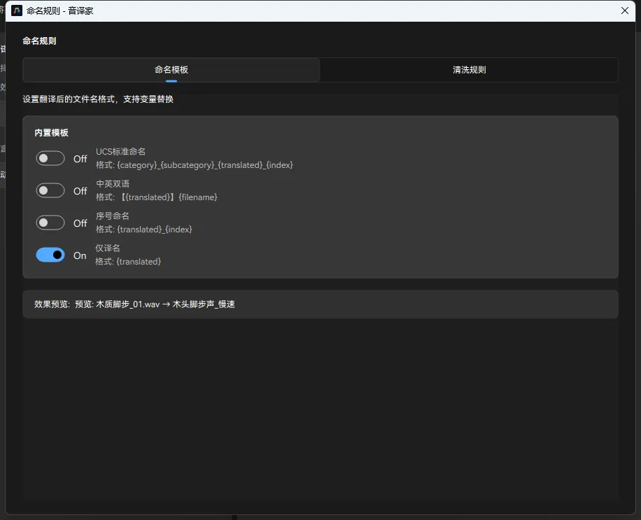 - 内置多种命名规则预设(中英双语、UCS 规范等)