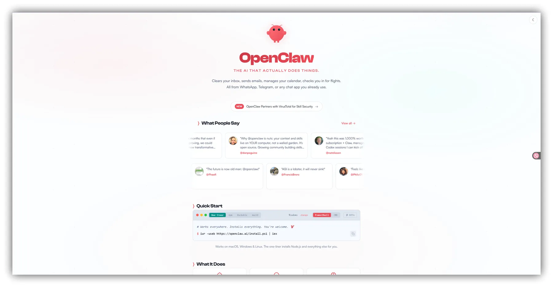 因为它是一个开源项目,你的所有数据、记忆和“技能”都存放在你自己的电脑上,保证了隐私,并且你可以根据自己的需求随意修改和扩展它的能力。简单说,OpenClaw 就是把一个强大、主动、能动手干活的AI,变成了你的个人专属数字伙伴。