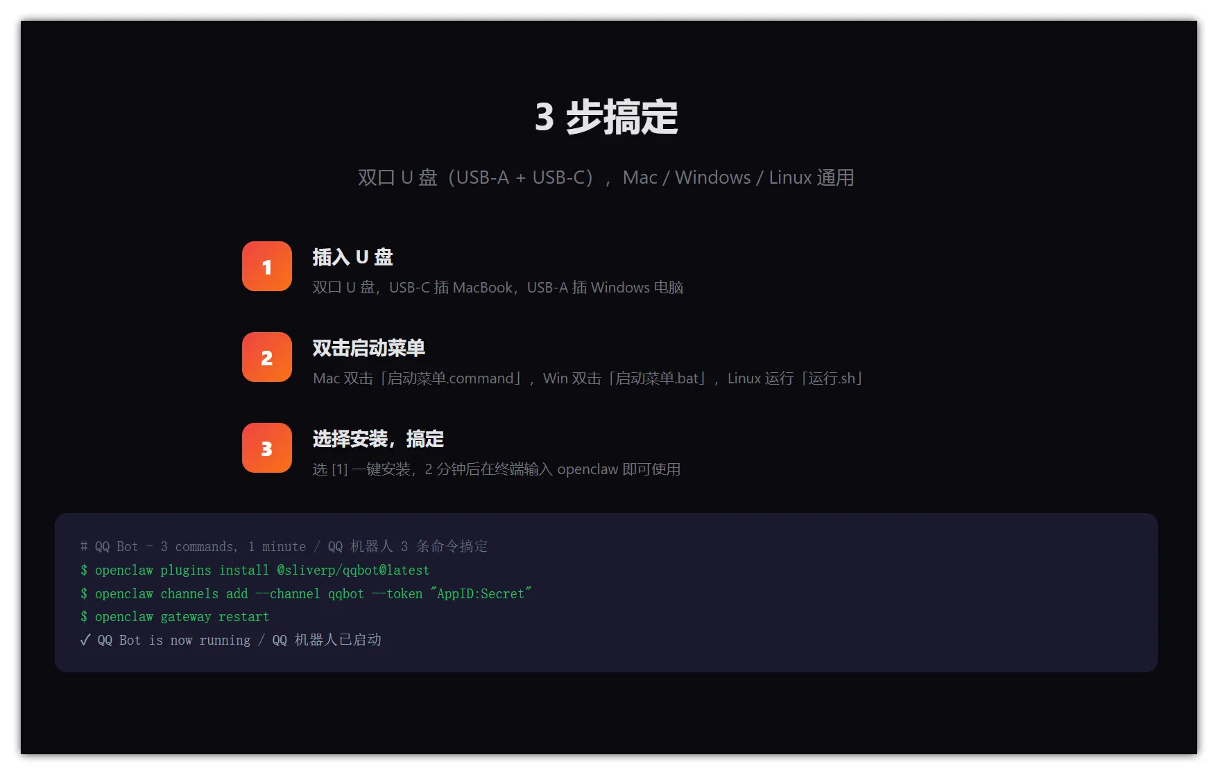 - 接入 QQ 机器人:双击 Mac-Menu.command,选 [3],输入 AppID 和 Secret