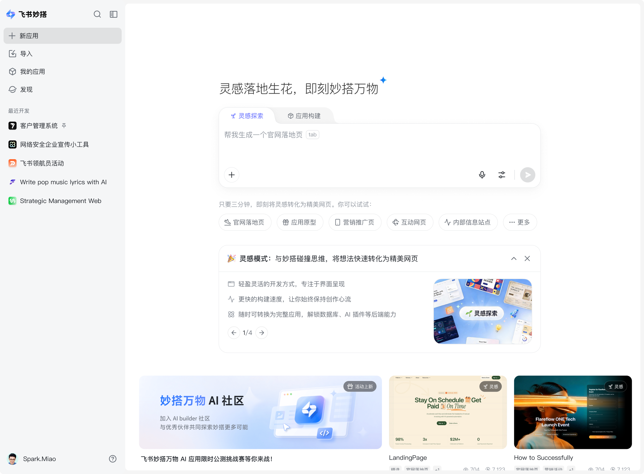 飞书妙搭 现推出限时免费创建 OpenClaw 活动,活动期间,妙搭的所有用户每日均可享受一定的免费 Tokens 额度。使用妙搭创建 OpenClaw 应用,一键云端部署你的专属龙虾助手,无缝接入飞书插件与飞书机器人,零门槛开启你的 AI 工作流。
