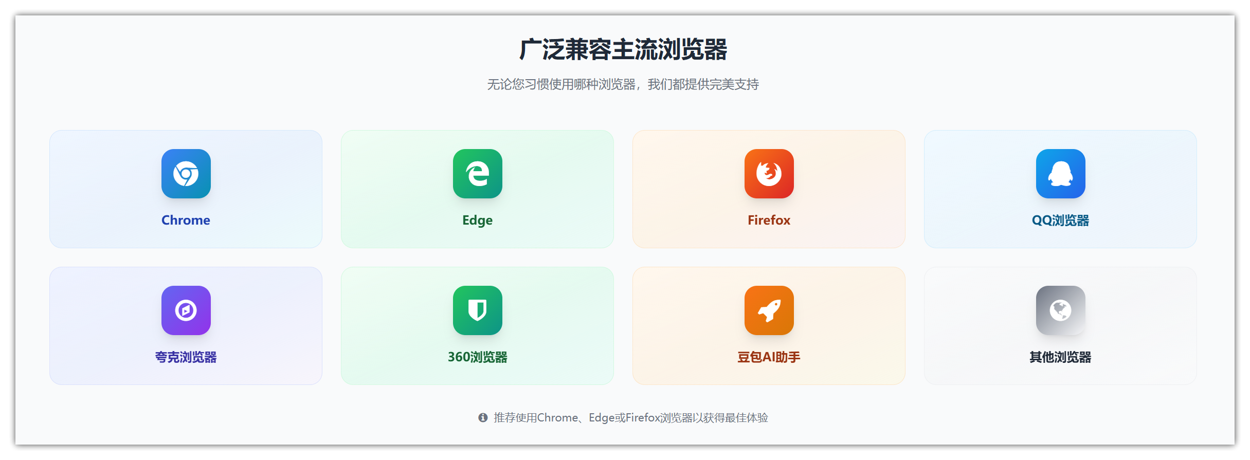Chrome、Edge、Firefox、QQ浏览器、360浏览器、夸克浏览器…