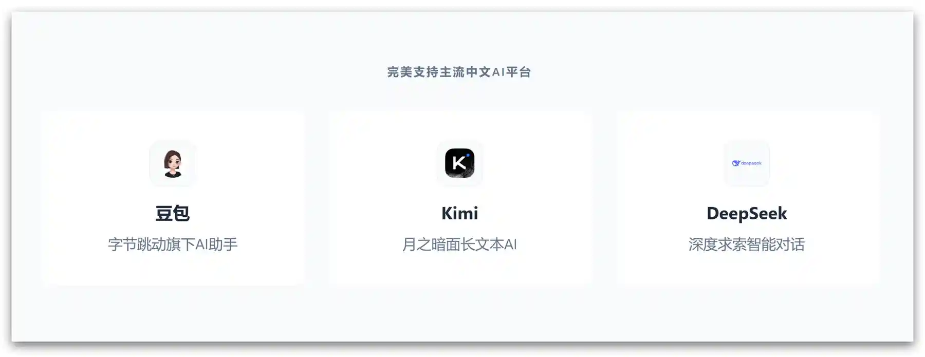 目前还在持续更新,已经完美支持豆包、Kimi、DeepSeek,接下来还会开发对讯飞星火、通义千问等更多中文AI平台的支持。
