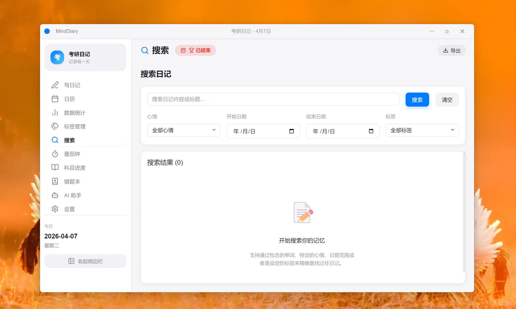 考研、备考是一场持久战,选对工具能让努力事半功倍!MindDiary 考研日记,把学习记录、时间管理、错题复盘、AI助教全整合,开源免费、数据本地、功能全面,专为考研党量身打造,从备考初期到考前冲刺,全程陪伴,帮你告别无效备考,高效冲刺上岸!