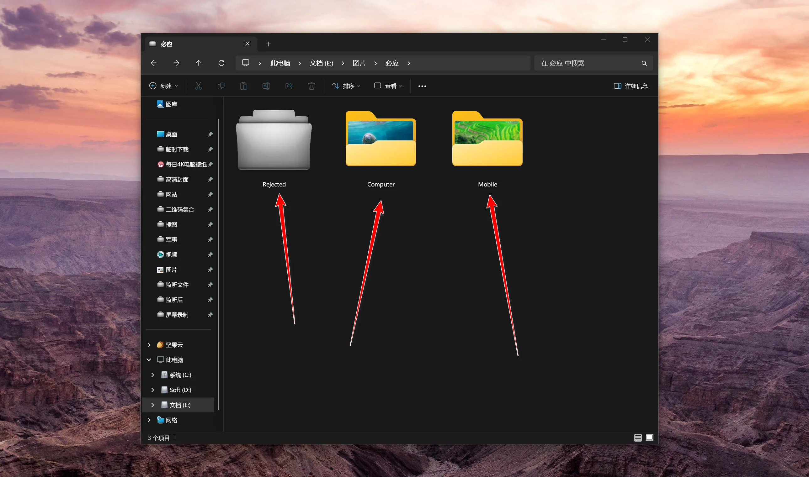 下载完成后,会自动根据图片分辨率横纵比分类归档,横向高清图存入Computer文件夹(电脑壁纸专用),竖向图存入Mobile文件夹(手机壁纸专用),分类逻辑清晰,后续查找、使用超方便,不用再在杂乱文件夹里翻找适配壁纸。
