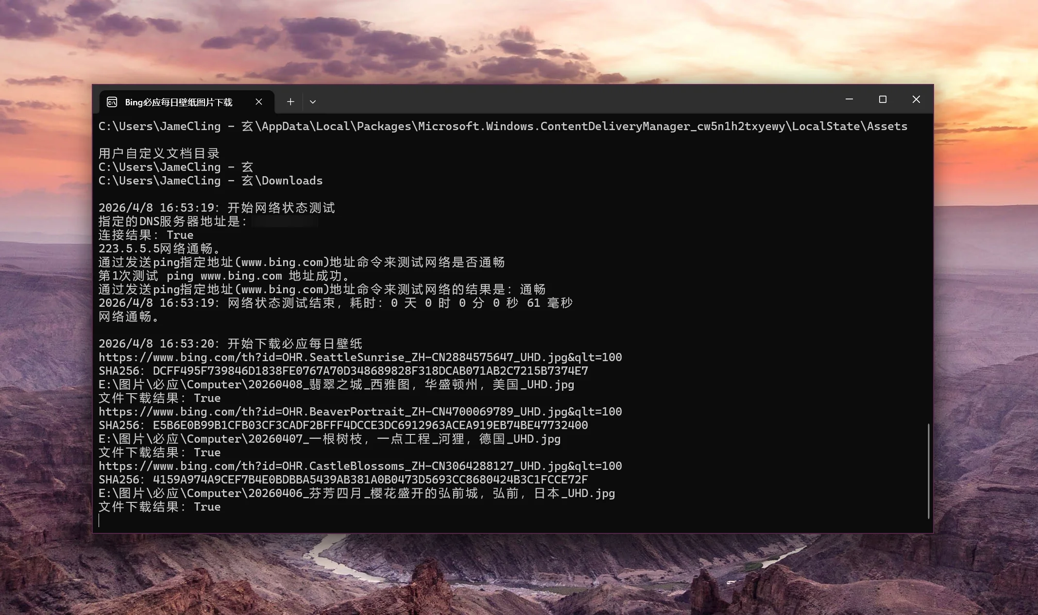 - 控制台程序模式:带有微软Bing图标的可执行文件,创建桌面快捷方式后,拖入Windows开机启动文件夹,每天开机自动运行,默默下载最新壁纸,不打扰日常操作;