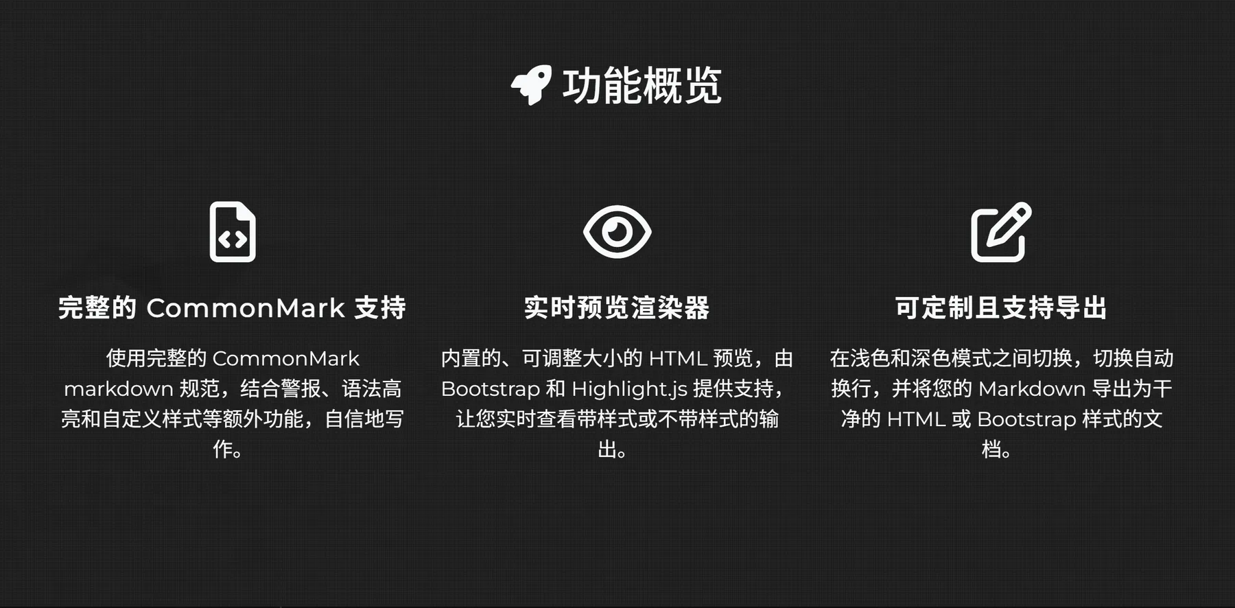 - 支持 Bootstrap、Fontawesome、Highlight.js 样式美化