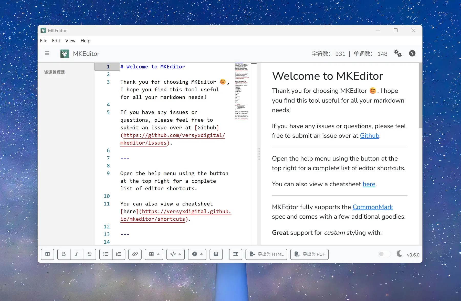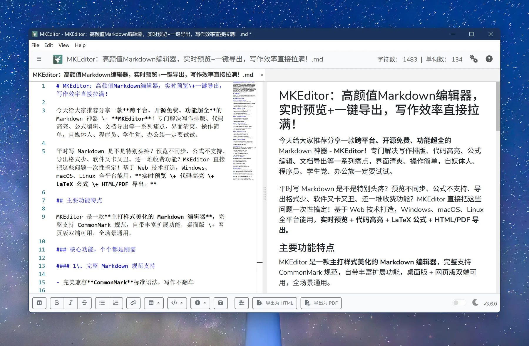平时写 Markdown 是不是特别头疼?预览不同步、公式不支持、导出格式少、软件又卡又丑、还一堆收费功能?MKEditor 直接把这些问题一次性搞定!基于 Web 技术打造,Windows、macOS、Linux 全平台能用,实时预览 + 代码高亮 + LaTeX 公式 + HTML/PDF 导出。