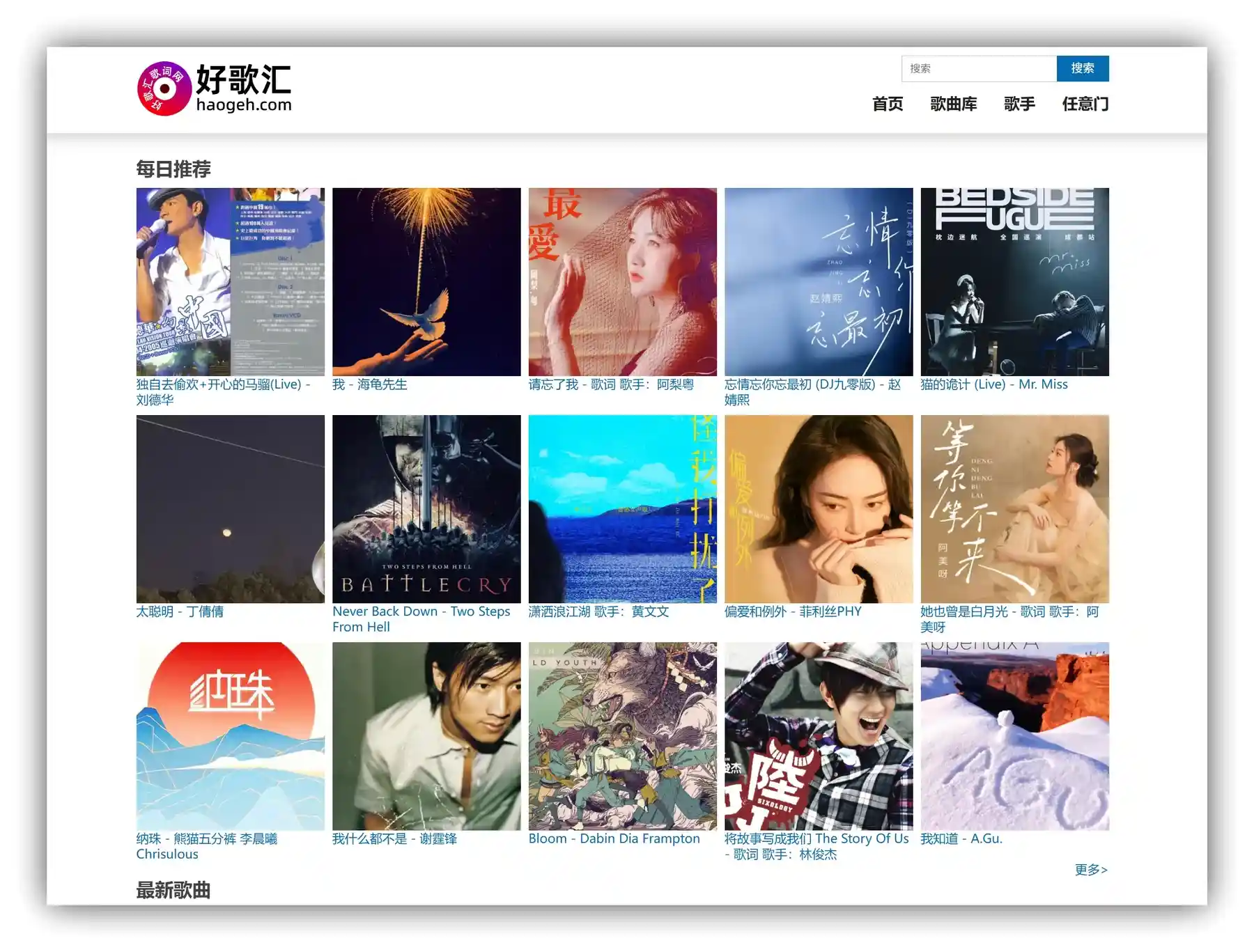 简介:是一个专注于提供歌曲歌词的网站,致力于打造一个全面、便捷的歌词搜索平台。它收录了海量的歌曲歌词,涵盖流行音乐、网络歌曲、经典老歌、抖音热门歌曲等,满足不同用户的需求。无论你想找哪首歌的歌词,只需在好歌汇搜索一下,就能轻松找到。