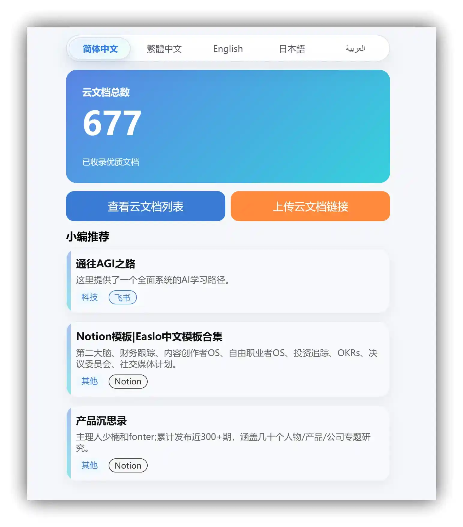 简介:一键查找、分享飞书、Notion、语雀、FlowUS等云文档