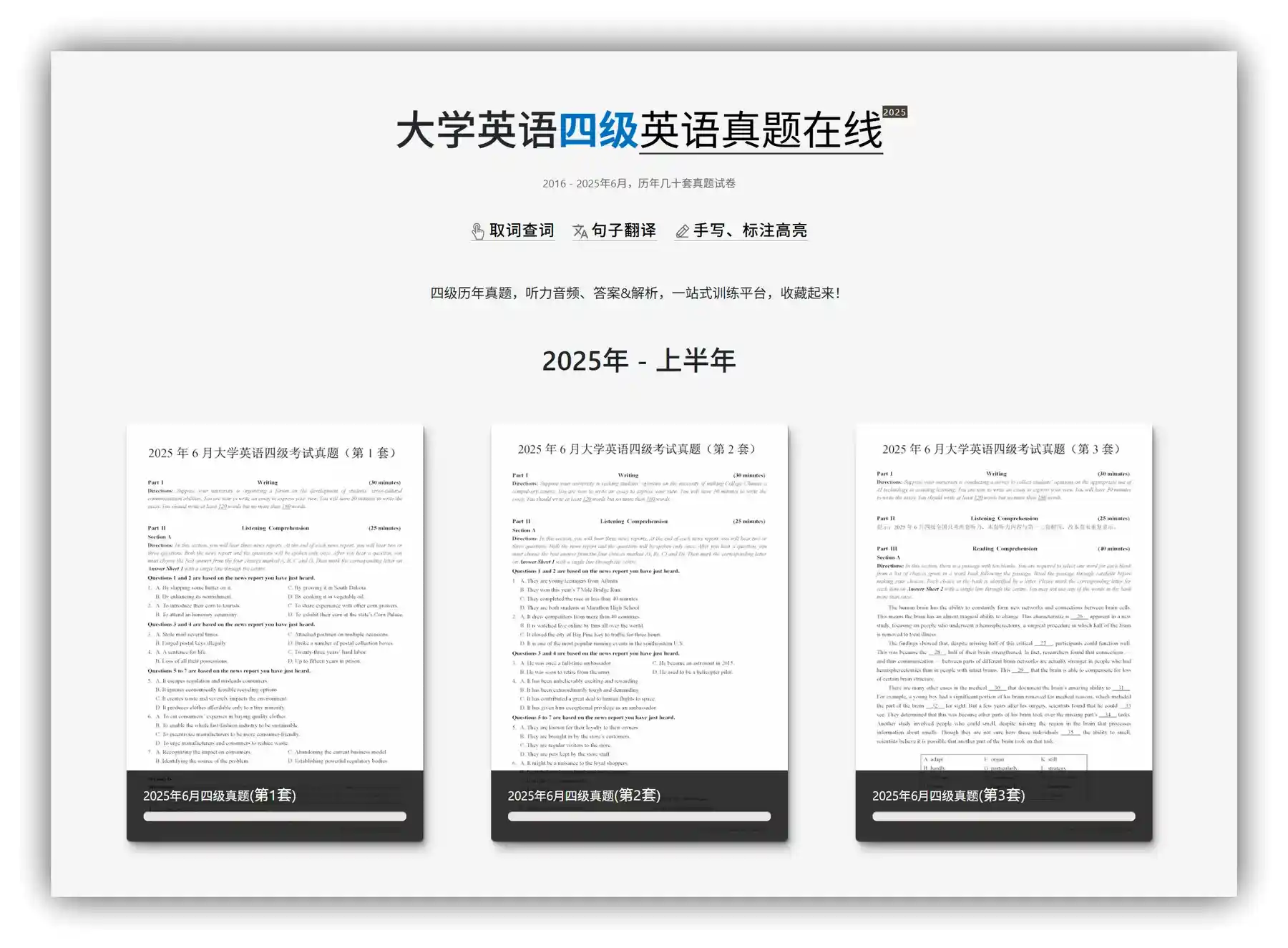 简介:历年考研英语、四六级、专四专八真题,免费版可以下载pdf文件。