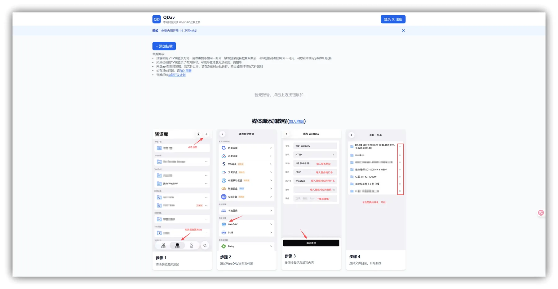 - 无需安装客户端:用户只需在 QDav 网站登录夸克账号并授权,即可获取专属 WebDAV 链接,全程基于网页操作,轻量便捷。
