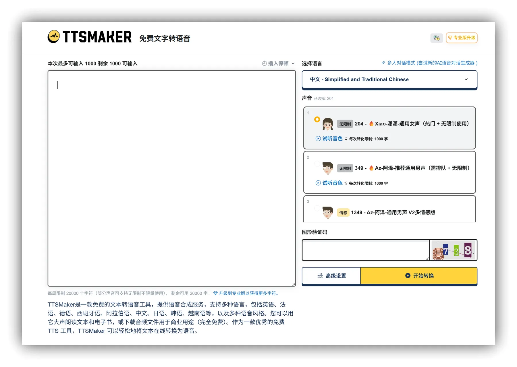 - 批量处理能力:允许一次性转换较长文本(最高 5000 字符)。