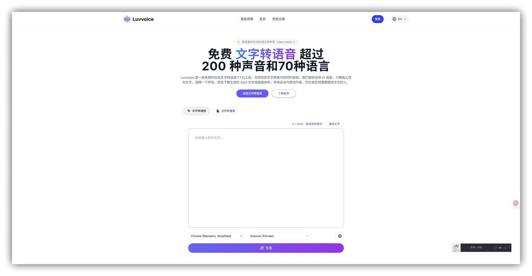 Luvvoice 提供高拟真度的 AI 语音合成服务,主打情感化与自然语调,适用于有声书、短视频配音等对语音表现力要求较高的场景。