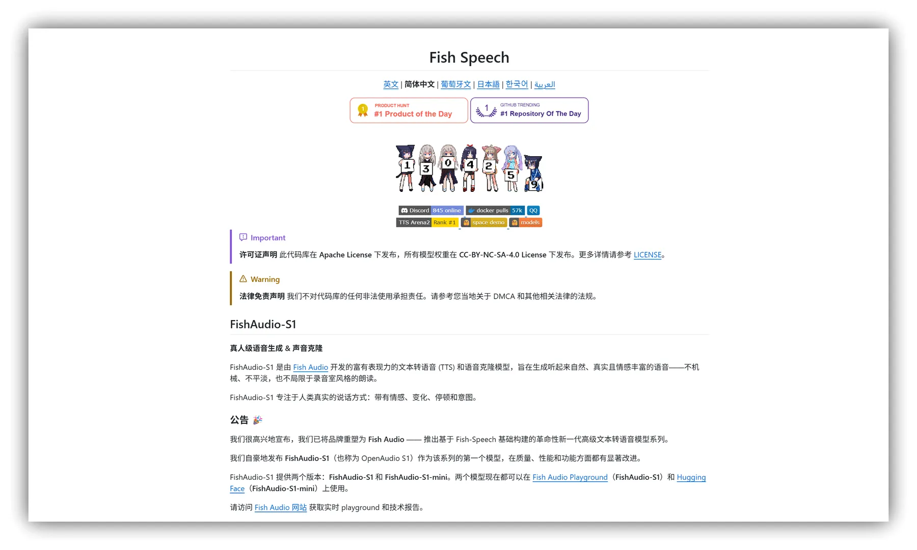 Fish Speech 是一个开源的端到端语音合成项目,强调高质量、低资源消耗,支持中文语音生成,适合本地部署与研究。