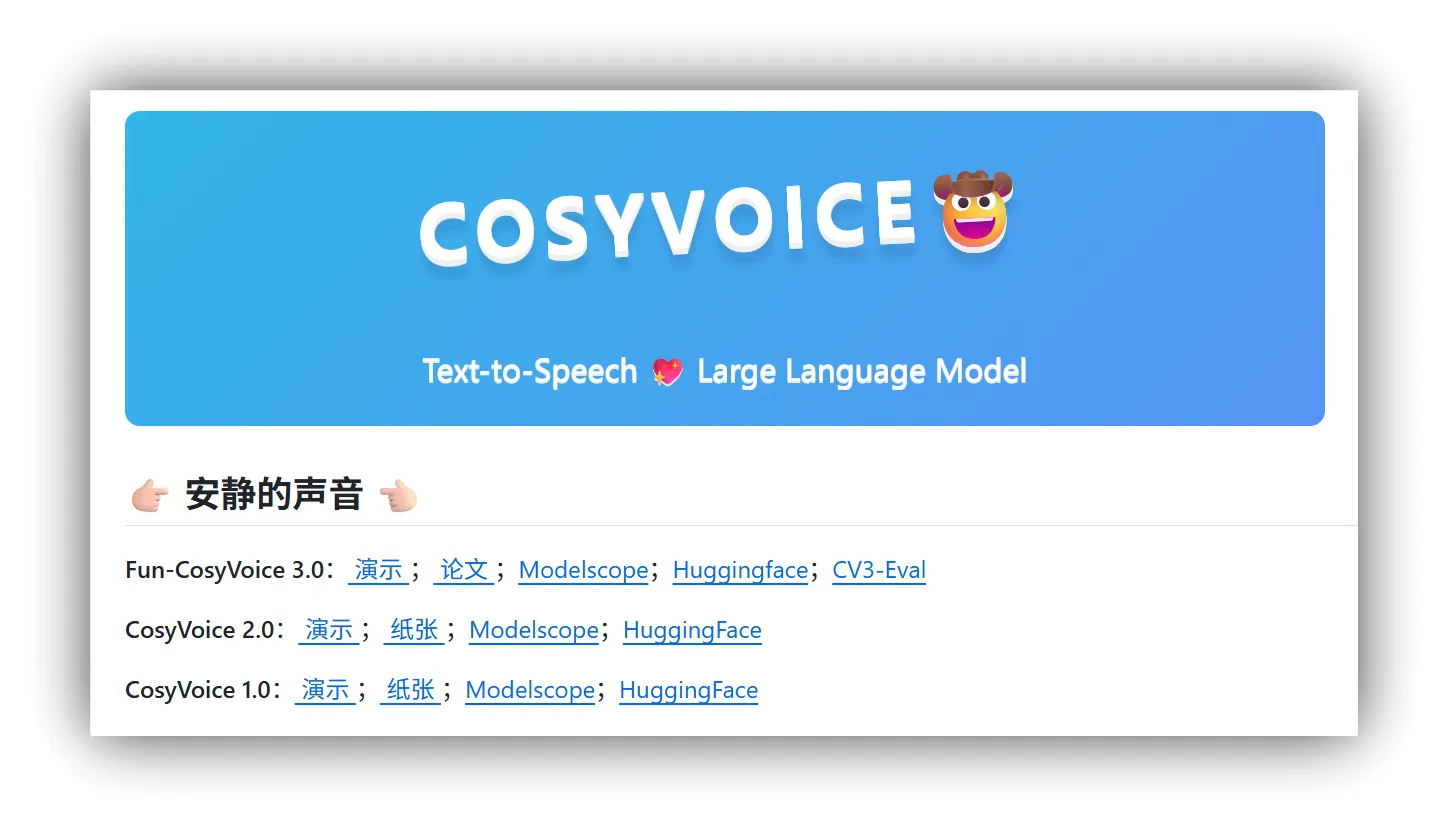 网址:https://github.com/FunAudioLLM/CosyVoice
