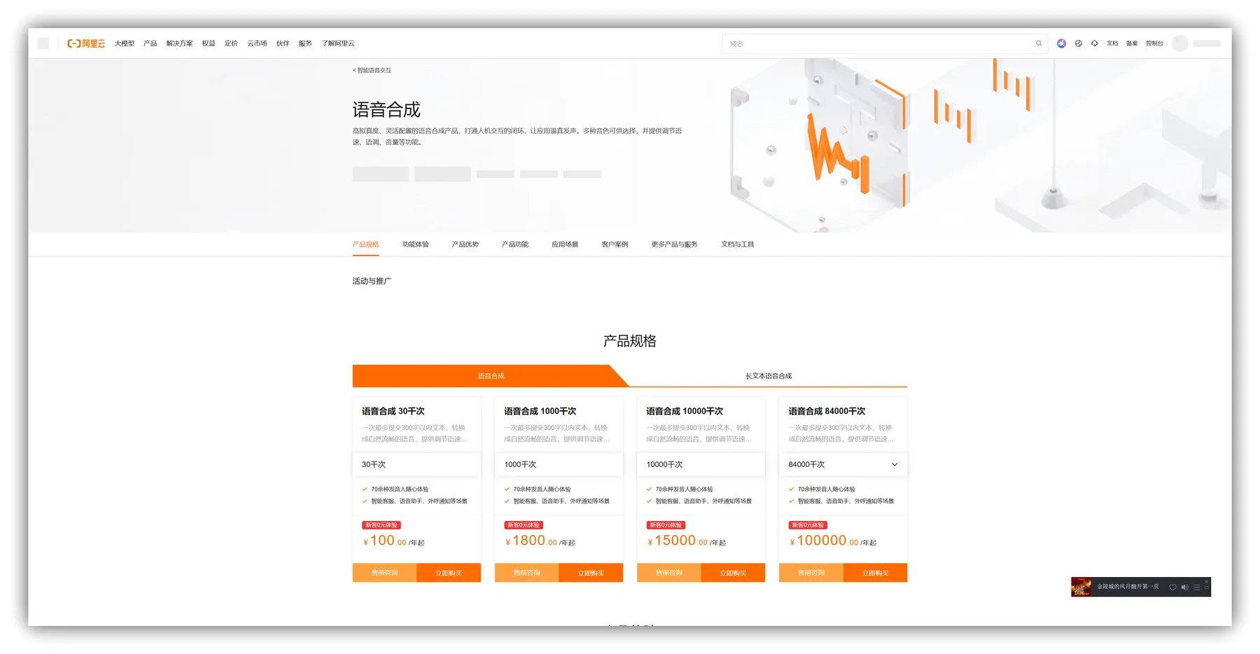 阿里云 TTS 基于深度学习模型,提供高可用、高并发的语音合成服务,适用于大规模商业应用场景。