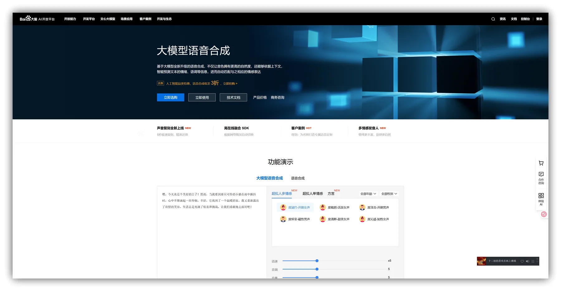 百度 TTS 依托文心大模型技术,提供高表现力的语音合成服务,强调语义理解与语音表达的深度融合。