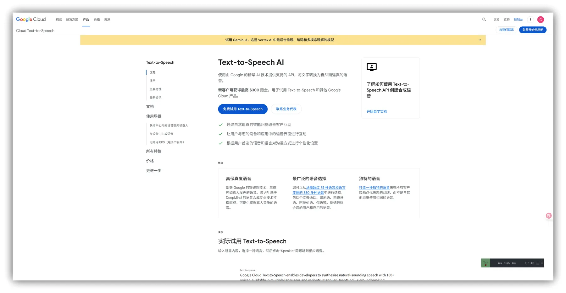 网址:https://cloud.google.com/text-to-speech?hl=zh-CN