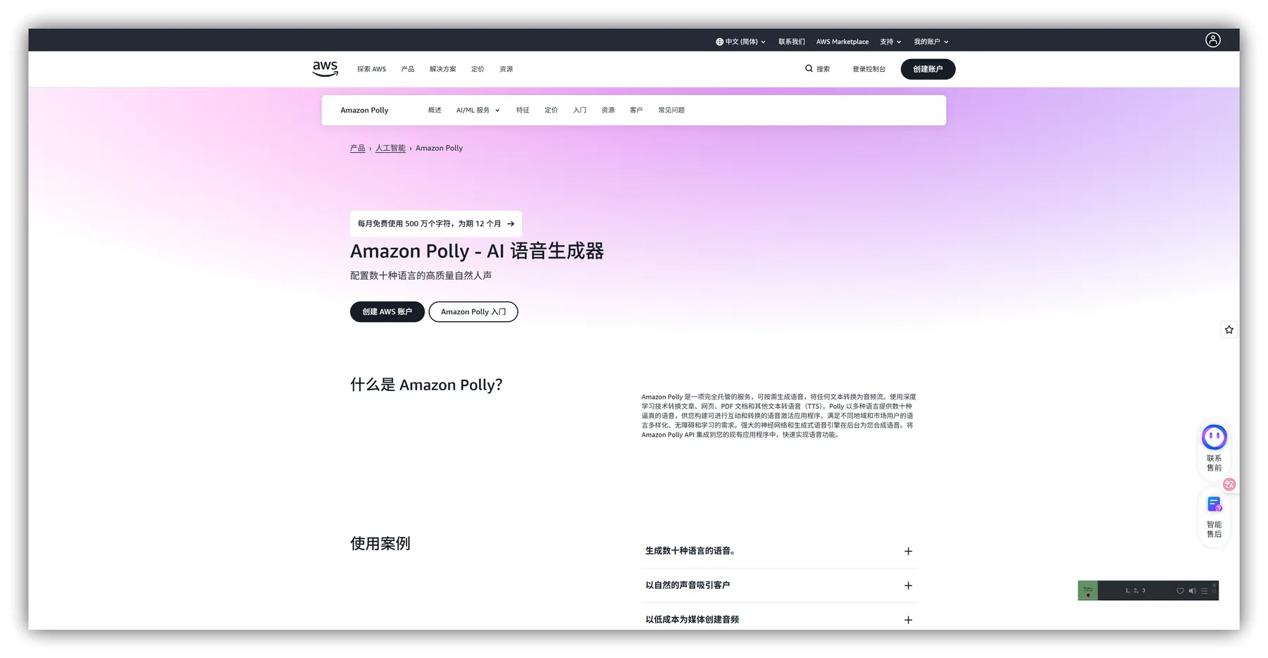 Amazon Polly 是 AWS 提供的云 TTS 服务,以高可用性、多语言支持和逼真语音著称,适合构建全球化应用。