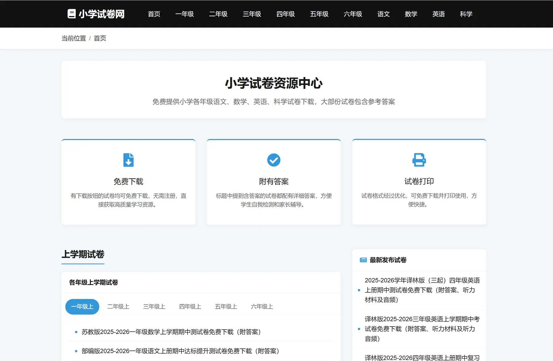 小学试卷网 为您提供小学等各年级语文、数学、英语、科学试卷,试卷包含答案并且能够免费下载打印,免费提供小学各年级语文、数学、英语、科学试卷下载,大部份试卷包含参考答案:https://appsj.szxuexiao.com/